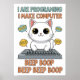 A hilarious and adorable graphic featuring a cute cat on a keyboard with the misspelled phrase "I ARE PROGRAMING I MAKE COMPUTER" and "BEEP BOOP". Perfect for programmers, cat lovers, and anyone who enjoys funny coding memes and quirky designs.