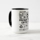 Funny provansvarig som hanterar information mugg