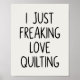 Funny Quilting Love Saying Quilters Black White Poster