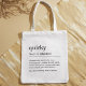 Designed in a clean black-and-white word definition layout, this tote bag combines practical everyday use with witty, friend-focused charm. Ideal for gifting to best friends, coworkers, or anyone with a sense of humor. A simple, versatile tote that works as a daily carry bag or a thoughtful, laughter-filled gift for fans of minimalist typography and quirky personality design.