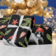 Denna söta näsa som är papper med ett mönster av roliga tvättbjörnar i rödhatt, julgranar och stjärnor i vita och röda remsor på svart bakgrund är perfekt för presenter under vintern. Njut av det.
