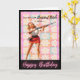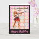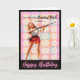 Featuring a fabulous 1950s glamour girl in full pin-up perfection, this cheeky card delivers vintage vibes with a modern twist.