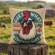 Den här djärva och humoristiska illustrationen har en självsäker tupp som rockar ett par solglasögon för coola, som ställs mot en stil-baksida med varma vintagar. Den klassiska "Gissa vad?" KycklingButt-skämtet kommer till liv med ett westernt-möter-80-tal-estetiskt, där land-charm blandas med lekfull nostalgi. Med sin bedrövliga, solstripade bakgrund och djärva typografi har denna design en strålande men modern dragningskraft, perfekt för dem som i kärlek odlar humor eller vidriga djurkonst. Blandningen av vintage Americana och den lättsinniga komedin gör den idealisk för alla som har en roligt, återhållsam estetik med lite western cowboyattityd. AI skapade teckningar.