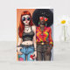 Säg Grattis på födelsedagen till en vän med det här rovgiriga 70-kortet. En kaukasisk och afrikansk-amerikansk kvinna i groovy 1970's stil kläder. Välkomna popkonst tecknad stil-vänner i 1970 års vibes.