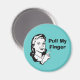 Humoriserad magnet, med en retro-svart och vit tecknad grafik av 50 stil-kvinnan som pekar på hennes finger, mot en akvatisk bakgrund. Svart text lyder, dra Finger. Underbar magnet för hemmet eller kontoret. Anpassa texten för att läsa allt du vill. Gör en underbar gåva.