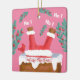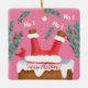 En söt och roligt rosa Jultomten reversibel ornament där han på ena sidan visar sig gå ner på skorsten, sina fötter i luft, under den vaksamma ögat av en kardinal, och på den andra sidan står han med en jingle-klocka i ena handen och 3 presenter i den andra. Anpassa den med ditt Julhälsningar, år och familjens namn. © ArianeC Illustrations-Alla höger reserverade