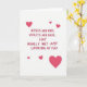 This greeting card features a plain white background with bold red text centered in the middle. The message begins with the familiar line, “Roses are red, violets are blue,” and then turns into a cheeky, suggestive phrase meant to surprise and amuse. The lettering is red sans-serif with a smooth, even look that makes the words easy to read at a glance. Five flat fuchsia hearts are placed around the text as simple accents. One larger heart sits in the lower right corner, while smaller hearts appear near the upper left, top center, and lower left. With no characters or scenery, the focus stays on the words and the flirty tone. The card mixes romance and humor in a bold, confident way, making it a fun choice for a partner who enjoys a little sass with their Valentine’s Day affection ❤️