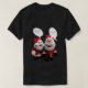 Lustigt jultomte T-skjorta Den här T-Shirt är garanterad att le över julhelgen. Den har två söta tecknad jultomte, en som frågar den andra en gåta, med svaret på baksidan.