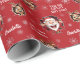 Kute och rolig julomslutning papper för flickor med Jultomten, Rudolph och en renflicka som går igenom på den röda bakgrunden med det vita namn och två andra olika texter, som lätt anpassar dem eller lämnar en del av det tomt. - Kate Eden Art