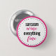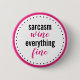 Knapp för flickor "Sarcasm, Vin, All Bra". Svart och shock rosa. Trendigets typografi.