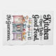 This kitchen dish towel combines humor and design to create a cheerful kitchen accessory.