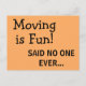 Funny Sassy Sarcasm Orange Flytta Announcement Vykort