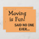 Funny Sassy Sarcasm Orange Flytta Announcement Vykort