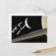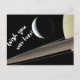 Ett vykort som visar Saturnus och fyra av dess måne. Enceladus, som på ett framträdande sätt visar sina geyrar. På nedre högerna kan vi se Prometheus och Pandora. Under och till lämnad (precis ovanför ringar) är Titan. Av i avstånd är en blå punkt som representerar jorden. Perfekt till den vetenskapsman som måste komma undan allt.