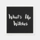 Cute black and white napkin with typography. Textläser: What's Up Witches. Det här är ett underbart tillägg till er Halloween fest-dekoration! Ange tonen för en roligt kväll. Matchande artiklar i min butik.