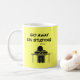 Ett lustigt kaffe mugg med ett piktogram av ett student som sover på skrivbordet och ord Go Away jag studerar. Gör en underbar gag-gåva, lärargåva eller partiförmån.