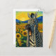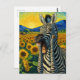 Funny Screaming Zebra i Van Gogh Sunblomma Fält Vykort