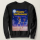 This t-shirt design features a funny dancing skeleton holding a cheerful "Happy Halloween" banner. With its silly expression and playful dance moves, the skeleton brings a lighthearted twist to the spooky season. Surrounded by stars, confetti, and colorful Halloween-themed elements, the design creates a festive and fun atmosphere. Perfect for anyone who wants to celebrate Halloween in a joyful, non-scary way. Great for costume parties, school events, or just showing off your Halloween spirit in a fun and casual style!