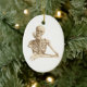 Lustigt leende skelett med sin beniga hand vilande på sin hacka.