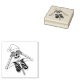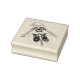 Den här träkonsten frimärke för era hantverksprojekt har en linje teckning om ett lustigt skelett som håller runt prydnadsföremål med snurrar upp till ögon och bär en Jultomten hatt.
