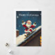Jultomten i aktion! Roligtens vykort visar att tomten skidar tak i ett hus i fullt vintervärlden. Det är ett projekt fullt av humor och energi som förenar en gynnsam atmosfär med en dynamisk, sportig accent. Det "icke-fotokort" som finns i ett modernt stil passar bra med tecknadens motiv och stänger samtidigt av julcharmen. Vita snöflingor på tak och ett skrattande Jultomten gör denna perfekt för önskemål fullt av glädje och skratt. Ett unikt val för fläkt av ovanliga, humoristiska illustrationer och älskare av julsporter. glädjen och lägg dina kära i julstämning med den här originalen!