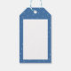 A funny snowman cartoon on Christmas gift tags. Use "Personalize this template" to change the "Merry Christmas!" text and create a unique, customized item. It's maximum Christmas with this excited snowman dressed up as Santa Claus, jumping out of a Christmas present like a jack-in-the-box. The surprise gift is wrapped in gold paisley wrapping paper and a green ribbon with white snowflakes. With a white box on the reverse to write your message.