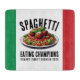 Make that Italian family reunion memorable and a riot with this spaghetti eating champions glass cutting board, which features the colors of the Italian flag and an image of a delicious heaping plate of my favorite Italian pasta, topped with tomato sauce, meatballs, and basil leaves! Personalize with surname or event name!