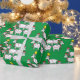 Den här vita presentfigursättningen i helgdag har hand plockade-getter i tomten som är staplade på varandra med en guld-stjärna överst, på bakgrunden till grönten.