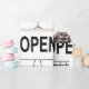Funny Stick figur Holding Open Sign Presentpapper