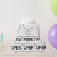 Backa dina presenter i humor med denna unika pappra förpackning med ett stick figur som innehåller ett "ÖPPET"-tecken. Den enkla utformningen av svart och vit tecknad lägger till en roligt, lätt vrid till födelsedagar, öppningar för företag eller särskilda tillfällen. Ett underbart val för dem som kärlek kör med kreativ och är personifierade.