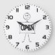 Lägg till charm i valfritt utrymme med den här väggklockan som innehåller ett sunt stick figur med ett "ÖPPET"-tecken. Utformningen av en ren tecknad ger en roligt och hälsar på butiker, hemmakontor eller studior. Ett underbart sätt att behålla tid samtidigt som du lägger till tecken och lite humor till din décor.