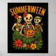Funny Summerween Skeletons Luau Party Halloween Poster