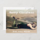 Ha lite roligt i julklapp. Lustigt fotografi på vintagen av en kvinna som ligger på sin mage vid stranden. Hon har en hemsk baddräkt, grönt nyloner och högklackar. Över i vitt "God jul" och under "från Sunny Florida"