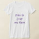 Det här är en Womens T-Shirt med det roliga ordspråket "detta är bara mitt ansikte" på den. Du kan byta färg i skjortan och färg i skrivningen.