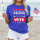 Denna lustiga t-shirt innehåller ett populärt politiskt citat om dumt politikar som folk får sparken av oavsett politik. "Du kan inte laga Stupid, men du kan rösta ut det" är en modern, patriotisk t-shirt-design i en slående kombination av rött, vitt och blått accentuerad med stjärnor.