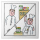 Funny Tecknad Chef Sewing on Button Mushroom Kakelplatta