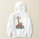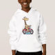 Bilden är en underbar Tecknad Giraffe Riding en motorcykel.