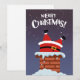 Rolig serie Santa Claus fast i skorstenen Julkort