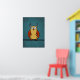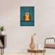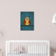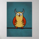 Uggla poster med en lustig tecknad uggla med horn och stort ögon på en texturerad petroleumblå bakgrund. Den stirrar, stirrar och stirrar på dig.