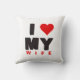 Lustigt kudde med 3d-text "I Kärlek My Maka". Svart brev, rött hjärta på vit bakgrund. Du kan ersätta texten med en pojkvän eller flickvän