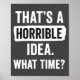 Funny That's A Horrible Idea What Time_ Sarcastic Poster