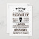 Add a laugh to your bathroom with this funny toilet rules postcard! Perfect for guests, family, and anyone who appreciates a little sarcastic bathroom humor.