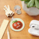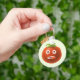 Lönsam tomatnyckelkedja med en tecknad som illustrerar en konstig tomatkaraktär med fastlåst tunga och ett förbryllat utseende i öga.