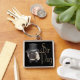 Funny Top hat Monocle Herr Pug Hund Fyrkantig Silverfärgad Nyckelring
