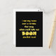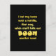 Gult förmedlar ett humoristiskt takorelaterat budskap på en solid svart bakgrund. Betoningen på "BOOM" belyser den kloka idén att skapa en extra tako när fyllningar släpps ut.