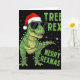 Funny Tree Rex Christmas Dinosaur Santa Hat Lights Kort