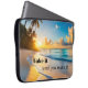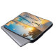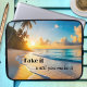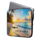 Laptop sleeve med en solnedgång på en tropisk strand med handflatan träd, med dina (lustiga eller andra) texter (valfritt).