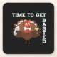 Funny Turkey Time To Get Basted Thanksgiving Square Paper Coaster