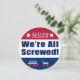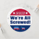 Inte lycklig med någon av kandidaterna till valet 2016? Då är den här designen till dig. Den här cirkelformade designen har röda, vita och blå delar. Den övre röda sektionen har år 2016 mellan två stjärnor i vitt, med blå konturer. I mitten av det vita avsnittet står det: "Vi är alla skruvade!" i röd text, och i den blå delen av grund har man en demokratisk åsna från stil och en republikansk elefant från stil i vitt.