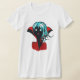 Vampyerskjorta med en digital illustration av en lustig odöda av luddig mörk med glansande öga, blått hår, fläkt och pulserande rött.